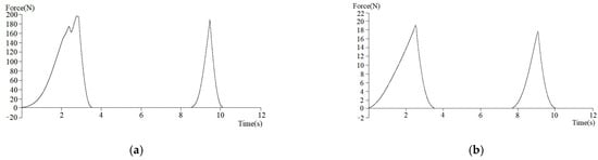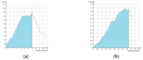 Compression test force−time diagram of melon seeds and flesh. (a) Melon seeds. (b) Melon flesh.