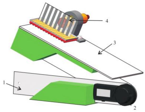 Homemade photoelectric sensing friction coefficient determination platform. (1) Bottom plate; (2) protractor; (3) tilt plate; and (4) photoelectric switch.