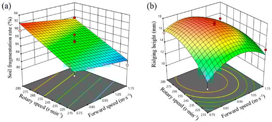 Response surface analysis. (a) Soil fragmentation rate (SFR). (b) Ridge height (RH).