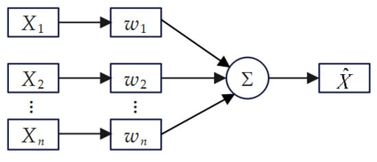 An adaptive weighted average algorithm is used to fuse each greenhouse with the processed homogeneous sensor data. The core idea of the algorithm is to minimize the total mean square error under the conditions of the total mean square error, according to the measurement value of each sensor, and in an adaptive way to find the optimal weighting factor corresponding to the sensor. The sensor data and the corresponding weighting factor are multiplied, and then by summing these, the fusion value can be obtained [24], as shown in Figure 3.