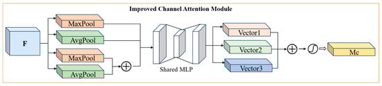 Improved channel attention module. A third branch is added that combines max pooling and average pooling information, and the corresponding third vector is generated through shared MLP.