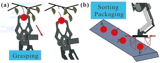 High-performancefruit grasping tasks: (a) fruit picking, (b) fruit sorting and packaging.