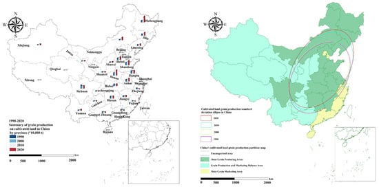 (1) Telecoupling is connecting two or more subsystems at a distance, producing effective behavioral feedback relationships and influences. With the stable formation of China’s CLGP pattern, the main grain-producing areas, the balance of production and marketing areas, and the main grain-marketing areas have formed a systematic interactive relationship, coupled with the natural environment and the economic and social long-distance linkage, jointly promoting the national grain security. The main grain-producing areas and the areas with balanced grain production and marketing need to further stabilize and improve the quality of cultivated land to meet the CLGP’s objectives. Restoration and safeguarding of arable land, enhancing the quality standards for arable land, and implementing scientific approaches to crop management are key to increasing grain production and ensuring a steady supply of grain to the main grain-marketing areas. Innovative CLGP methods are needed for the main grain-marketing areas; on the basis of scientific management and the protection of existing cultivated land, publicity and policy support will be increased to encourage the existing agricultural labor force to engage in sustainable cultivation. These measures will promote sustainable coupled development between different systems.