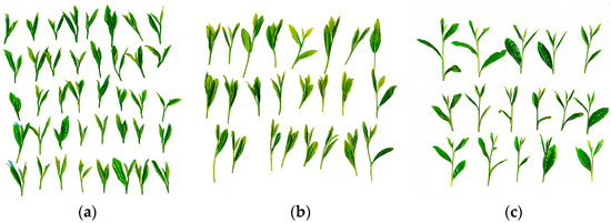 Statistical samples of some fresh leaves. (a) One bud and two leaves; (b) one bud and three leaves; (c) one bud, four leaves and above.