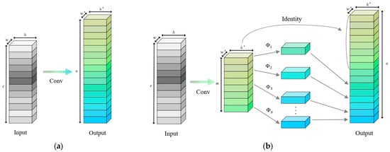 Comparison of the structure of normal convolution and Ghost convolution. (a) Normal convolution; (b) Ghost convolution.