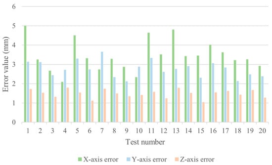 Twenty groups of positioning tests were conducted, and the statistical error data were visually analyzed, as shown in Figure 18.