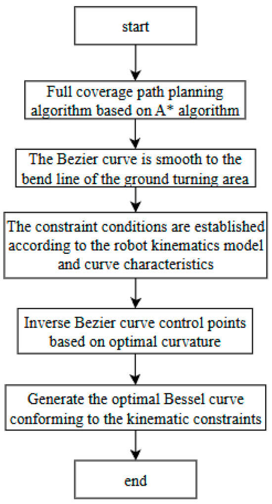 In summary, a third-order Bessel curve is used to smooth the transition path generated by the improved A* full coverage path planning algorithm. The specific steps of smoothing are to extract the turning point from the path generated by A* algorithm and use of the third-order Bessel curve to interpolate the smooth path segment.