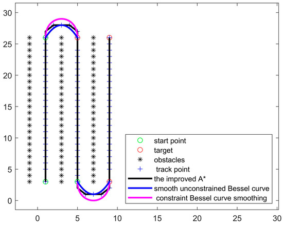 3.1.1. Static Simulation of Improved A* Algorithm Based on Multi-Constrained Bessel Curve