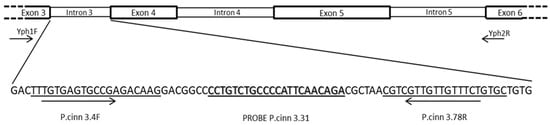 P. cinn 3.31Probe b[FAM]-CCTGTCTGCCCCATTCAACAGA-[BHQ]63.48Intron3/Ypt159–78--This study