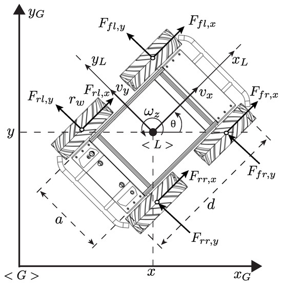 3.1. Model of the Skid–Steer Mobile Robot