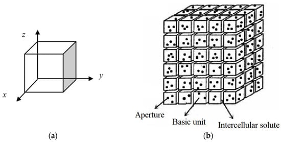 Tomato leaves have a typical neutral plant cell structure, with a thicker cuticle layer, less thick but tightly arranged epidermal cells, well-developed and columnar palisade tissue adjacent to the epidermis, obvious veins, and vascular bundle sheaths [30]. The presence of pore-like voids between leaf cells, which are compressed and deformed under pressure, results in pore sizes usually between 50 and 100 nm [31]. In this study, intercellular solutes were considered the main gas diffusion channel, with the possible pore energy used for gas storage and possible channels within the leaves, using a dual-medium model. The model assumes that cell development in the leaf palisade tissue and sponge tissue is relatively uniform, with evenly distributed cells in each layer and continuous and isotropic cells within each layer. It is transformed into an ideal dual-pore medium model for research.