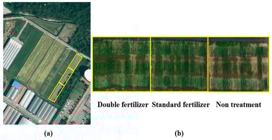 The study area for this research. (a) The garlic field located in Goheung-gun. (b) Three type of different fertilizer sector.