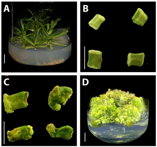 - Duclercq, J.; Sangwan-Norreel, B.; Catterou, M.; Sangwan, R.S. De novo shoot organogenesis: From art to science. Trend. Plant Sci. 2011, 16, 597–606. [Google Scholar] [CrossRef]