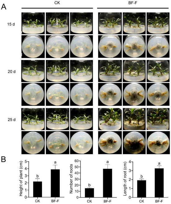 3.3. In Vitro Rooting of Microshoots with an Endophytic Fungal Strain ‘BF-F’