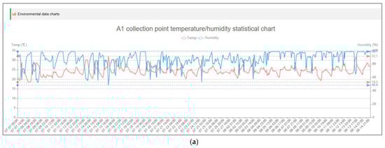 In the operational processes of the IoT system utilized in this research, the unique environmental conditions within the henhouse, characterized by elevated dust concentrations [39] and high humidity levels (showed in Figure 11a), necessitated the deployment of sensors with a robust combination of waterproofing, dust resistance, and high sealing capabilities to effectively address these challenges. Alternatively, sensors demonstrating insensitivity to dust and humidity may serve as viable alternatives in such specialized settings. Despite efforts made in this study to replace the affected carbon dioxide sensors, this substitution still introduced a certain level of impact on the overall integrity of the system’s data. Furthermore, it is recommended to integrate a data anomaly detection module into the system’s architecture. This module can play a crucial role in promptly alerting administrators to investigate any deviations from the norm, ensuring timely intervention in cases of abnormal conditions, and thereby safeguarding the effectiveness and completeness of the data. This proactive approach aligns with best practices in ensuring the reliability of data in IoT systems within specialized environments.