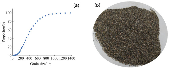 Distribution diagram of sediment particles in water source, (a) particle grading curve; (b) sediment particle sample of water source.