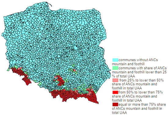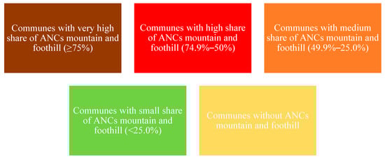 | Specification | Communes with the Share of ANCs Mountain and Foothill: | Other Communes | |||