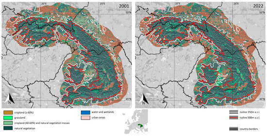 - Munteanu, C.; Kuemmerle, T.; Boltiziar, M.; Butsic, V.; Gimmi, U.; Halada, L.; Kaim, D.; Király, G.; Konkoly-Gyuró, É.; Kozak, J.; et al. Forest and agricultural land change in the Carpathian region—A meta-analysis of long-term patterns and drivers of change. Land Use Policy 2014, 38, 685–697. [Google Scholar] [CrossRef]
