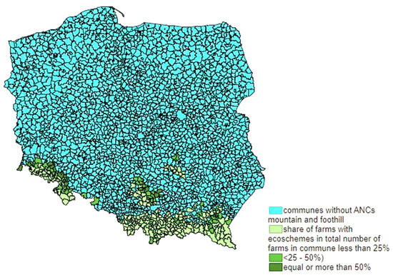 4.2. Involvement of Farms from Mountain and Foothill Areas in Poland in the Implementation of Environmental Measures in the First Year of the CAP 2023–2027