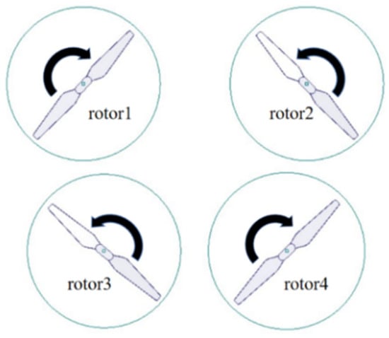 As illustrated in Figure 4, rotors 2 and 3 rotated counterclockwise, while rotors 1 and 4 rotated clockwise. Among the four rotors, rotors 1 and 2 were situated on the same plane, whereas rotors 3 and 4 were positioned on a plane slightly lower than the former.