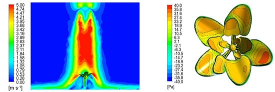 Fluid–structure interaction simulation results: (a) Distribution of downwash airflow around rapeseed at seedling stage; (b) Surface pressure distribution of rapeseed at seedling stage.