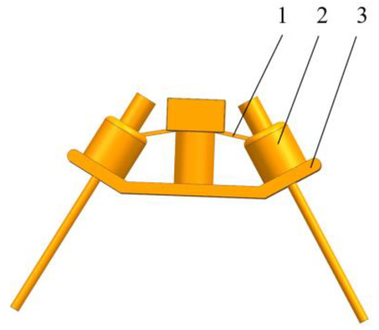Based on the triaxial dimensions of stem mustard seeds, the device design was carried out under the condition of successful shot seeding of stem mustard shot seeding. The device consists of seed feeding pipes, shot seeders, and shot seeding frame (as shown in Figure 1). Two shot seeders with a horizontal angle of 60° can be installed on the shot seeding frame at the same time, which can realise two rows of simultaneous seeding. Due to the symmetrical installation of the two seeders, their intake and seeding conditions are almost identical. Therefore, this article selects one side of the seeder for analysis.