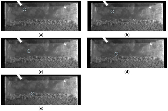 Example of stem mustard seed shot seeding process. (a). t = 0.6000 s; (b). t = 0.6010 s; (c). t = 0.6020 s; (d). t = 0.6030 s; (e). t = 0.6040 s.