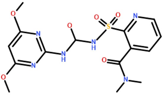 - Available online: https://pubchem.ncbi.nlm.nih.gov/compound/Nicosulfuron (accessed on 11 April 2024).