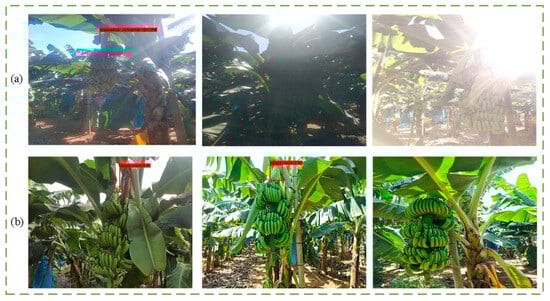 The dataset for model training was collected from a banana plantation base in Suixi County, Zhanjiang City, Guangdong Province, using an Intel RealSense D435i depth camera. A total of 9586 images were collected, with a resolution of 1920 × 1080.