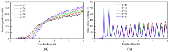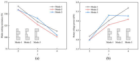 - The simulated trenching process showed that the designed rotary tiller had strong particle throwing and transfer capabilities to break bonds between particles. The dynamic seeding space was available during the gradual advancement process combined with the cooperation of the furrowing plow. The distribution of stress on the forward plow surface of the furrowing plow was analyzed. It was found that as the configuration distance between the rotary cultivator and the furrowing plow increased, the simulated trenching resistance and blade cutting resistance increased and decreased, respectively. Based on this, L was determined to be an estimated 83.8 cm. In addition, the cutting resistance decreased as the number of blades in the unit sub-area increases. The blade arrangement in Mode-2 with a quarter soil cutting pitch showed the smallest resistance and rotary tillage energy consumption.