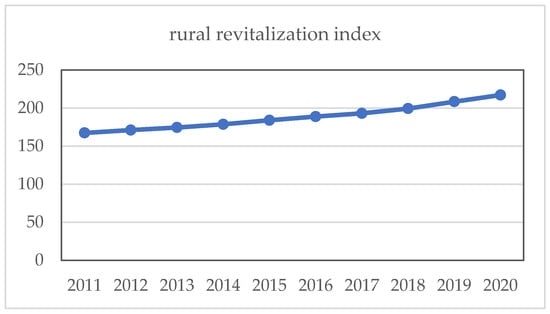 Trend of rural revitalization index in China from 2011 to 2020.