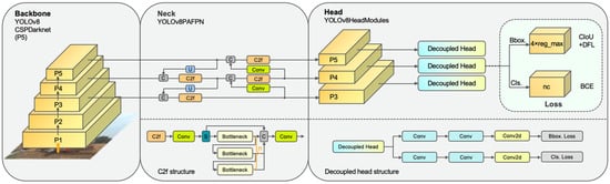 Neck: The neck of YOLOv8 integrates concepts from FPNs (Feature Pyramid Networks) [27] and PANs (Path Aggregation Networks) [28]. FPNs convey strong semantic features top-down, facilitating feature extraction from images at various scales. PANs introduce a bottom-up pyramid following the FPN, enhancing multi-scale feature representation capabilities by combining the strengths of both FPN and PAN structures.