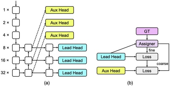 During loss computation, the Lead head generates the primary detection results and independently calculates its loss. Meanwhile, the Aux head also contributes to the loss function calculation and assists in backpropagation, updating preceding parameters. The Aux head uses the positive samples matched by the Lead head as its own positive samples to calculate the corresponding loss. Finally, the losses from the Lead head and Aux head are weighted and combined to form the total loss function, as illustrated in Figure 5b.