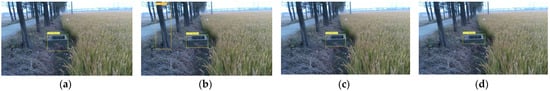 - Enhancing the interpretability of the model. Convolutional neural networks (CNNs) have limited interpretability; thus, heatmaps are utilized to evaluate the pros and cons of different positions in the field obstacle detection process, as shown in Figure 12. The intensity of red in the heatmap indicates the extent of its impact on target localization. Additionally, heatmaps can be used to analyze the specific impact of enhancement modules on model performance.