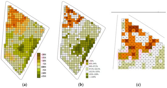 - Average-productivity zone: the average of pixel values was between 97.6% and 102.5%;