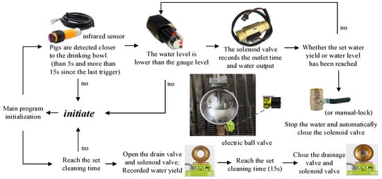 The working flow chart when the intelligent drinking water controller is set to automatic mode is shown in Figure 4.