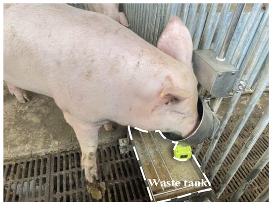 The waste water in the waste water tray is set directly below the drinking water fountain, which can basically catch the leaked water caused by the water-drinking behavior of the pig using the drinking water fountain. It may be difficult to avoid certain errors when the pig’s plays with the water, but considering the comfort provided by the pig drinking water and the economic benefits of the drinking bowl, we finally chose a waste tank of 30 cm × 40 cm. During the trial, in order to precisely monitor the amount of wastewater produced by the pigs, we adopted a rigorous data collection process: