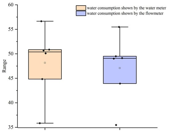 The water consumption recorded by the water meter was compared with that recorded by the flow meter in the experimental group.