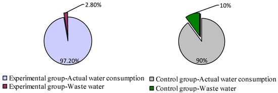 The ratio of average water waste and average drinking water consumption to actual water consumption during the experimental and control groups.