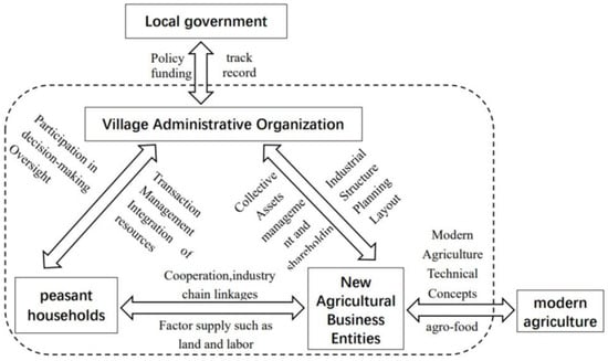 Village-level administrative organizations, new agricultural business entities, and rural households are assumed to be risk-neutral and bounded-rational agents who seek to maximize their benefits within their respective constraints. Based on the actual operational logic among the three actors, the following hypotheses are proposed: