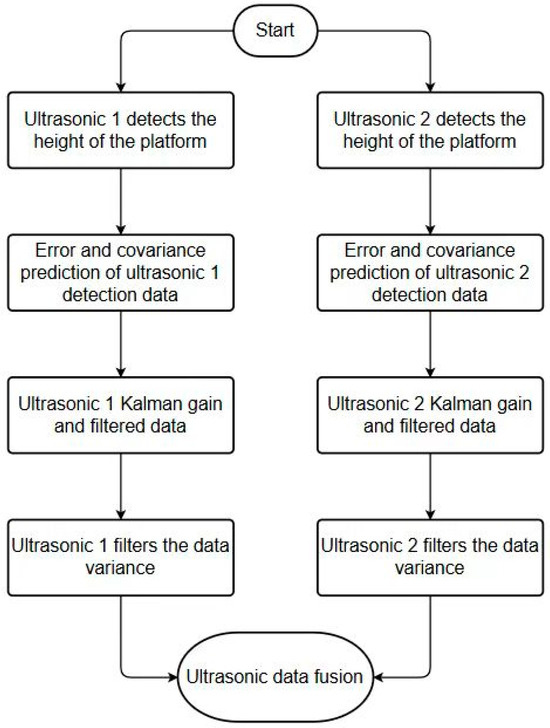 - To obtain the absolute parameters of the platform’s body, this study derived a set of platform-leveling algorithms, as well as Kalman filtering and Kalman filter fusion algorithms, based on the ultrasonic ranging modules on both sides. Experimental data show that, after platform leveling, the maximum variance of the pitch angle is 0.0474°, and the maximum variance in the roll angle is 0.1320°. After the ultrasonic ranging module is processed with the Kalman fusion algorithm, the maximum variance is only 0.0085.