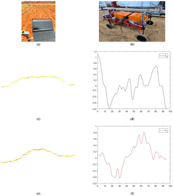 - This study derived a set of algorithms for calculating soil ridge parameters based on LiDAR scanning, and the platform combines absolute vehicle parameters for adaptive adjustment. The algorithm uses a sliding window filter and processes the filtered buffer zone data with a mean value, which not only reduces memory size but also makes the overall trend of the signal smoother. Then, the algorithm performs first and second linear regression on the filtered data to obtain soil ridge parameters. Experimental data show that the deviation of the LiDAR measured width from the actual width does not exceed 1.0 cm, and the deviation of the LiDAR measured height from the actual height does not exceed 1.0 cm. The platform’s actual adjusted width deviates from the actual soil ridge width by no more than 2.0 cm, and the platform’s actual adjusted height deviates from the actual soil ridge height by no more than 1.2 cm.