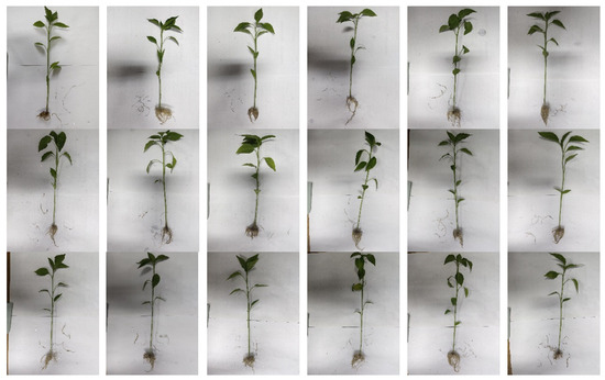 The experiment analyzed the substrate and root damage of pepper plug seedlings using the protruding seedling-picking method, and the soil matrices of the extracted hole seedlings were intact, and some of the extracted plug seedlings were washed as shown in Figure 15. The average length of the main roots of the experimental pepper plug seedlings was 34.5 mm, with no damage to the main roots. The average length of lateral root damage was 190.3 mm, with a lateral root damage rate of about 15.7%, effectively reducing the recovery period after transplantation and ensuring the success rate of seedlings after planting.