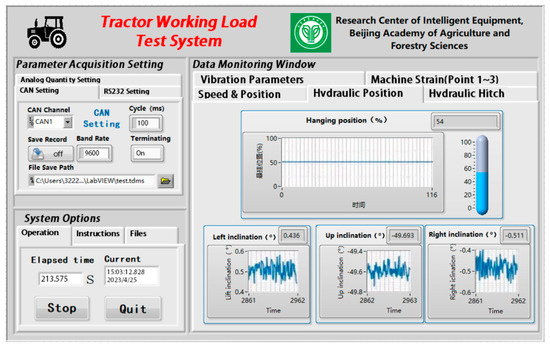 - This study develops a tractor-operating condition parameter monitoring system to comprehensively monitor the operating parameters of key components during tractor operation. The system meets the data acquisition requirements of various tests, such as the tractor driving performance, hydraulic lifting performance, traction performance, and implementation of strain measurements.