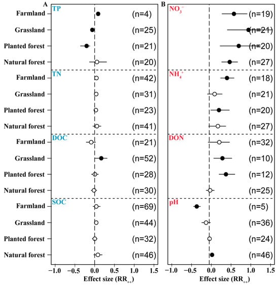 3.7. Effects of N Addition on Soil Chemical Properties in Different Ecosystems