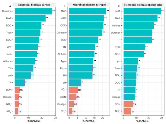 3.8. N Addition Affecting Soil Microbial Biomass Based on Random Forest Analysis