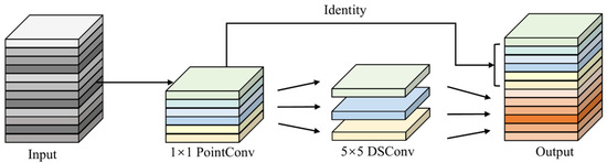 - Finally, the small and large-sized features obtained from the two branches were combined to obtain a feature combination, which was then output through a 1 × 1 convolution, enhancing the network’s adaptability and nonlinear representation capabilities.