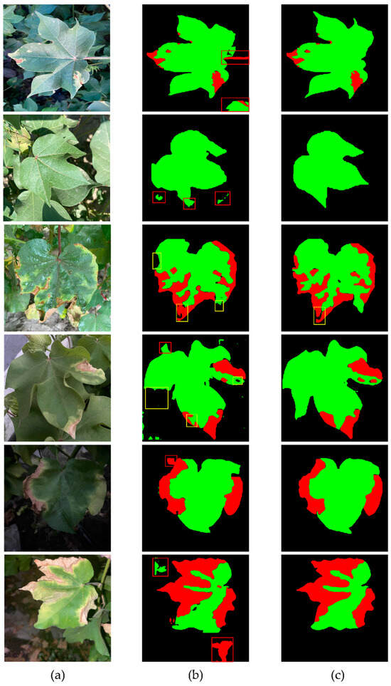 - Using multiple improvement strategies to enhance the model performance, a novel CVW segmentation model was proposed to achieve precise segmentation of leaves and disease spots, which can lay the foundation for the subsequent assessment of CVW levels.