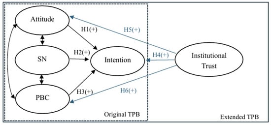 The following sections of this paper are categorized into five segments: The subsequent section provides an introduction to the theoretical basis and suppositions, encompassing the theory of planned behavior alongside an extended rendition that integrates institutional trust. Additionally, it outlines the research hypotheses and delineates the proposed research framework’s design. The third part provides further details on sampling, research areas, measurement, as well as reliability and validity testing. In the fourth part, descriptive statistics are presented along with the results obtained from data analysis using structural equation modeling. Moving on to the fifth part, it discusses how these study findings relate to existing research. Finally, in the last section, we present our research conclusions and acknowledge any limitations encountered during this study.