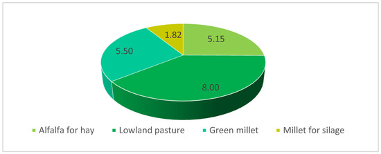 Considering the modest average production obtained in drought conditions, it follows that the area required for fodder is 20.47 ha, of which 8 ha is pasture (Figure 1).